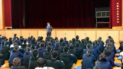 そして、今日の講話は西垣先生からです。「決めるのは自分!」。自分は教師に向いていないと言われた過去があったこと、しかし夢に向かって必死に取り組んだ結果が今である。