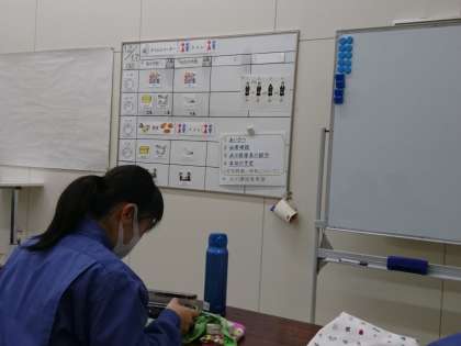 午前中の実習を終え、昼食をとっています。東中生は、紙器加工と事務補助の実習をしています。