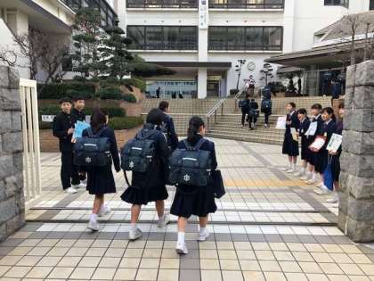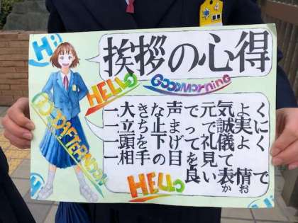 今日も部活動の部長たちが朝のあいさつ活動を行っています。寒さに負けない元気なあいさつで今日も1日頑張りましょう!