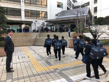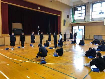 今日は全校集会です。続々と体育館に集合しています。今週も頑張れ東中生!