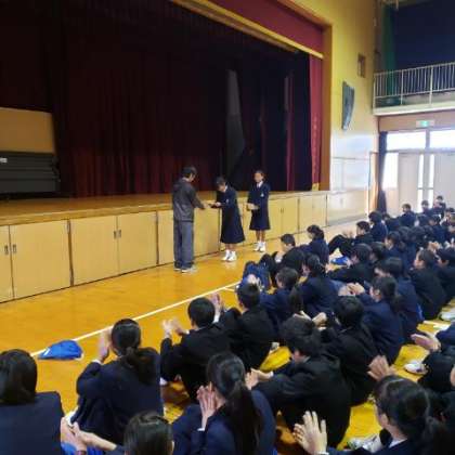 最初はあいさつ運動の表彰です。3学期も頑張りましょう。