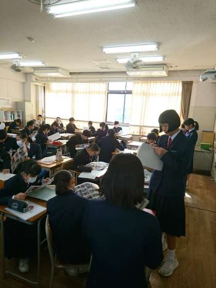 プリント配布のサポートをする生徒たち。頼もしいです!