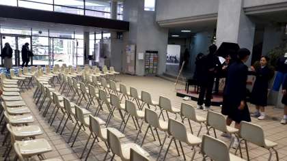 会場のホールの準備も整い、出演する東中生も気合いが入ります!