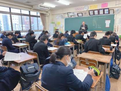 進路通信を読みながら、入試に関わる注意事項や心構え、手続きなどの話がされています。