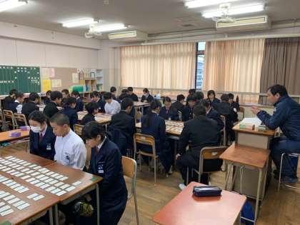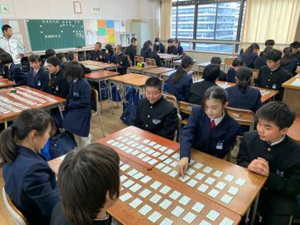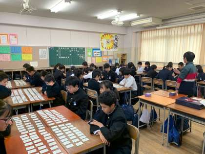 百人一首大会に向けての学級練習です。