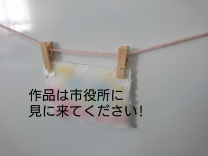 作品を展示する際の展示方法をいっしょに考えました。ウッドクリップを使ってうまく展示することができそうです!