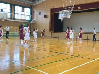 赤のユニフォームが追手門中学校、白のユニフォームが東中学校です。