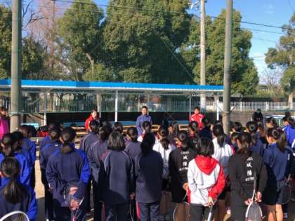 ソフトテニス部女子は大宮中学校にて開かれる、1〜4ブロックの合同練習会に参加しています。