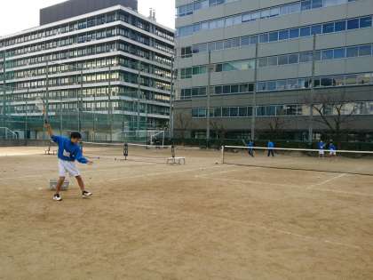 ボレー、サーブ、サーブレシーブ等の基礎練習をし、校内試合もおこないました。