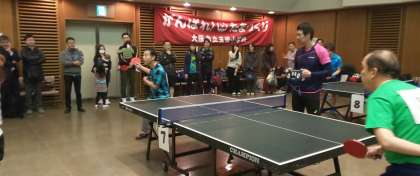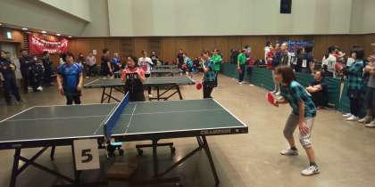 東中PTA卓球部のみなさんが各コートに別れて熱戦を繰り広げています。