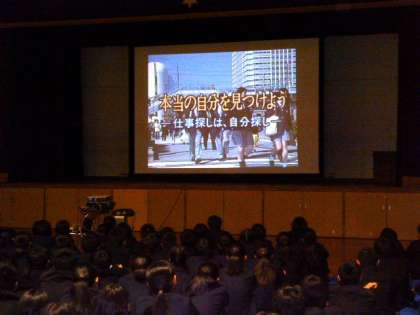 11月5日(水)の5限に体育館にてハローワーク大阪東の方に来ていただき、職業講話をしていただきました。