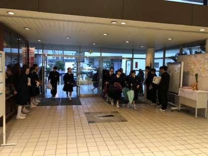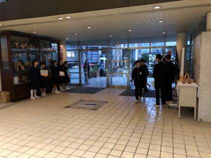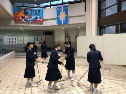 今日は雲も厚く、雨が降る朝です。雨にも負けず、今日も東中生は元気に登校しています。今日のあいさつ活動は雨のため玄関ホール入口にて実施をしています。元気な声が玄関ホールに響いています。ソフトテニス部の皆さんが黙々と清掃活動に取り組んでいます。
