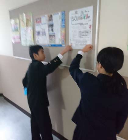校内に掲示していた作品展のポスターを撤収しました。画鋲の扱いに気をつけて静かに作業することができました。