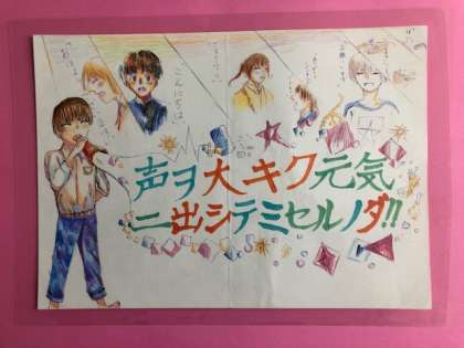朝のあいさつ活動で使用する手持ちポスターを美術部の皆さんが新しく描いてくれました。