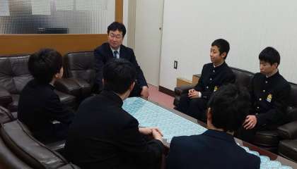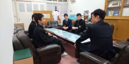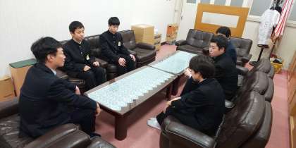 朝の校長室では、ロボコン全国大会壮行会が行われています。