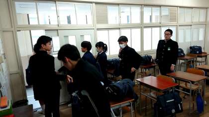 私立高校の出願の日となりました!入学試験の初日と考えて行ってくるように、との指導を終えて出発していきます。各教室で確認後、学校ごとに分かれて正門へ!