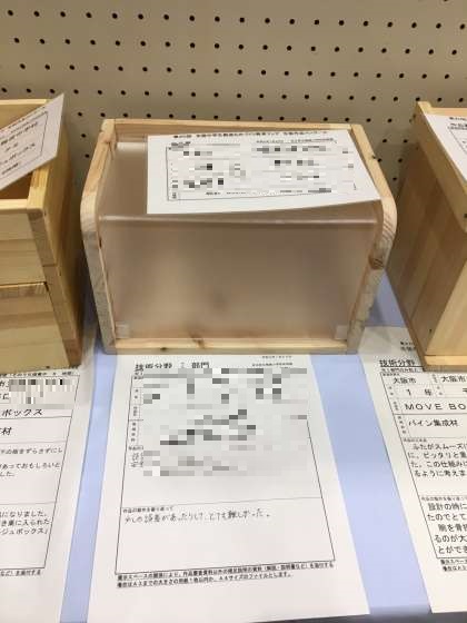 また、近くの会場では、技術・家庭科(技術分野)の授業作品として本校の代表生徒の作品が展示されていました。