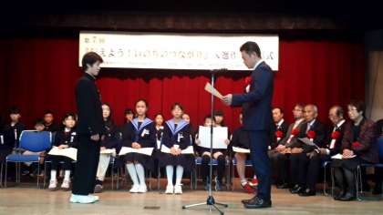 優秀賞を受賞した東中生が素晴らしい作文を朗読してくれました。