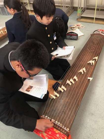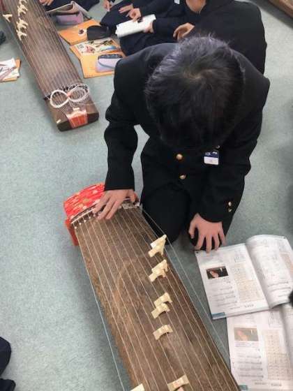 2回目の箏の授業のため、弾けるようになっている生徒がたくさんいました。授業の最後に「さくらさくら」が弾けるようになったか、チーム内で確認作業もしました。