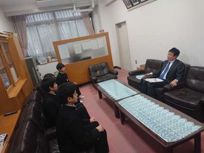 緊張した様子ですが、一人一人の答え方に対し、校長先生から丁寧に指導していただいてるので安心した様子もみられます。