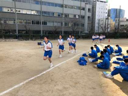 今日は天気も良く、2年生全クラスが持久走に取り組みました。どのクラスも大阪城マラソン大会での優勝を目指して意欲的に持久走に取り組んでいます!今年も大阪城マラソン大会が楽しみです!
