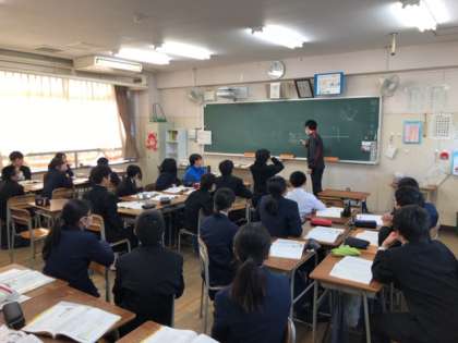 各クラスそれぞれの教材に対して、話し合ったり先生の話を聞いたりして、考えを深めています。