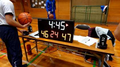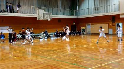 後半に追い上げました!残りわすがで2点差から逆転の3ポイントシュートがきまり、1点差で勝利しました。次のゲームも頑張ってください。