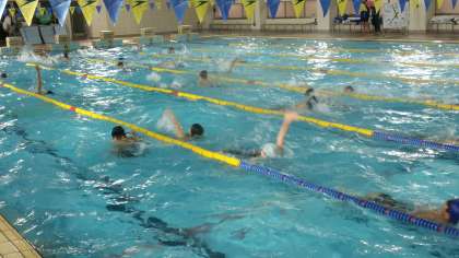 本日も上宮高校のプールをおかりして、合同練習を行っています。堀江、花乃井、港南、文の里、東の5校で100人近くの大人数で頑張っています。