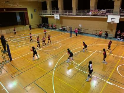 昼食後に3試合目、枚方中学校と試合です。この試合に勝つと16日に行われる準決勝トーナメントに出場できます。頑張れ!東中女子バレーボール部!