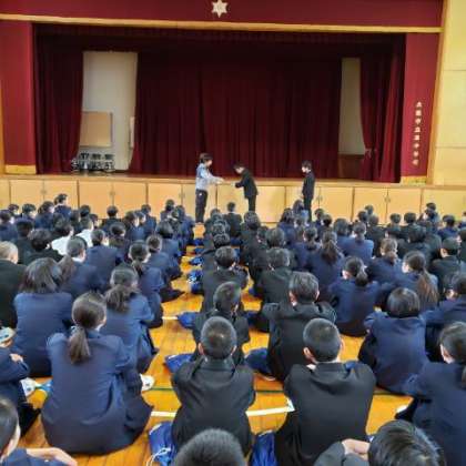 最初に藤原先生から、あいさつ運動の表彰が行われました。4組と5組が表彰されましたが、全体的に頑張っているので、全クラス表彰に近づいています。引き続きしっかりと取り組んでいきましょう。