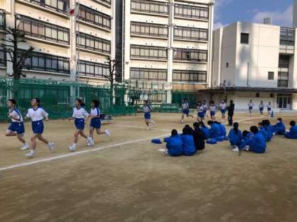 4時間目の2年3・4組は持久走に取り組んでいます。いよいよ明日に迫った大阪城マラソン大会に向けて最後の12分間走です。3学期は持久走を繰り返し心身ともに成長した成果を明日は発揮してほしいと期待しています!頑張れ2年生!
