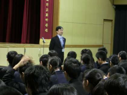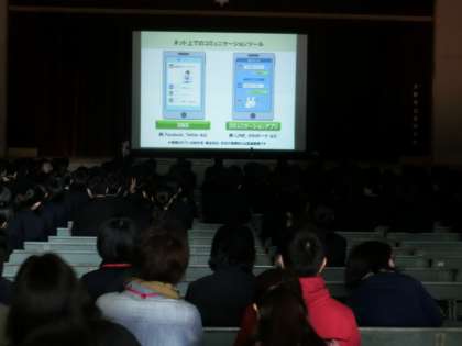 最後に校長先生から生徒たちに、「自分の行動が、加害者にもなり、また、被害者にもなる。スマホやインターネットの使用に当たっては、しっかりと考えてほしい。」