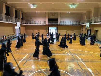 午後から本校の体育館にて、大阪市立城東中学校、大阪市立修道館に来校していただき合同稽古会を行いました。多くの稽古相手と剣を交えることが上達の近道だと思います。今日はとても有意義な稽古ができました。