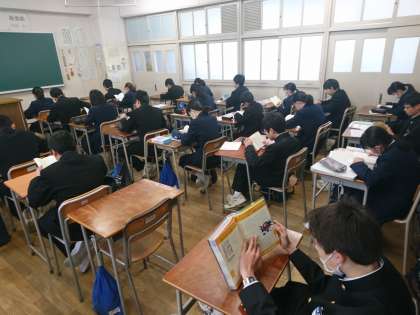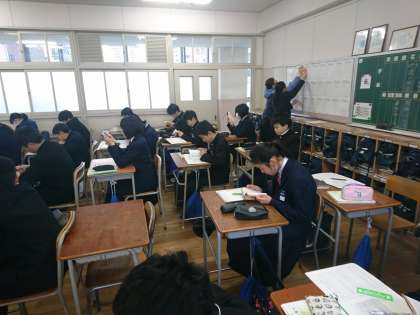 先生といっしょに掲示物の整理をしてくれている生徒もいます。