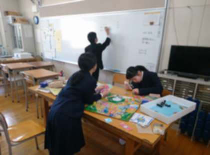 「今日は何をしよう?」という先生の問いかけから授業がスタートしました。色々な意見が出ましたが、相談して「人生ゲーム」をすることにしました。