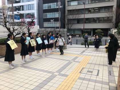 金曜日の朝も元気いっぱいにあいさつ活動が行われています。あいさつ活動の取り組みが広がり元気の良いあいさつが交わされています。