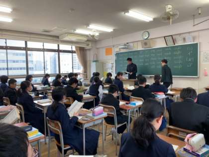 2限目、1年1組では西俣先生と難波先生による英語の授業が行われています。