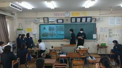 理科では、人間生活が環境に与える6項目の影響について、班で分担して調べ学習をし、パワーポイントを用いて各班からプレゼンテーションも行いました。