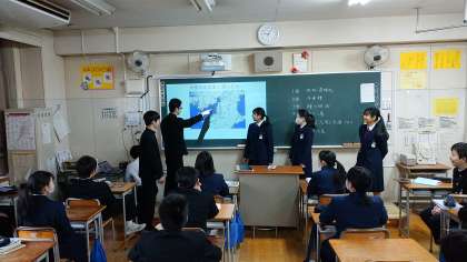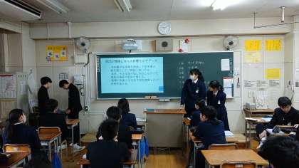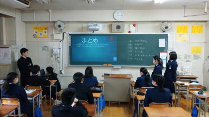 理科では、人間生活が環境に与える6項目の影響について、班で分担して調べ学習をし、パワーポイントを用いて各班からプレゼンテーションも行いました。