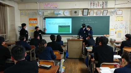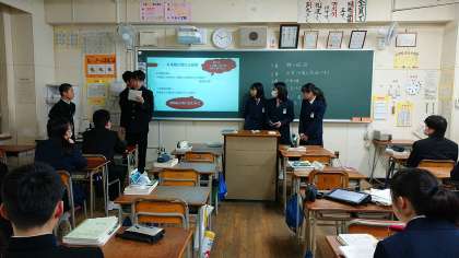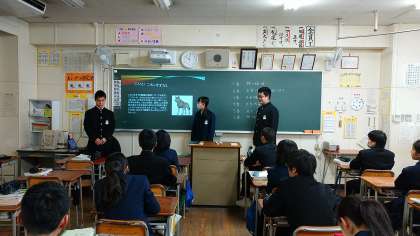 前に立って話す経験のある人とそうでない人で、立ち姿勢や話し方に違いが見られ、互いに発表を見ることで、多くの学びがありました。伝えることの難しさを実感する一方、班の中で互いに助け合う姿が見られる、良い研究発表会になりました。