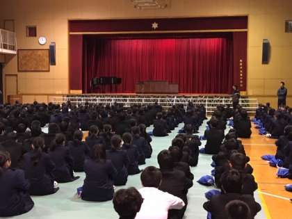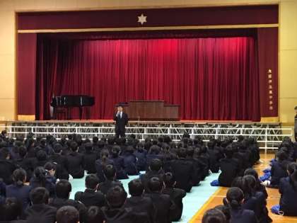 明日からの臨時休校について、現在分かっている事をテスト後に1、2年生に伝えました。臨時の集会のため、下校時刻が少し遅くなります。ご了承ください。