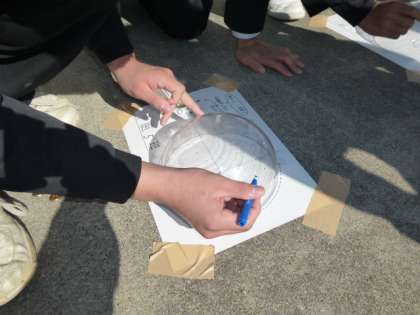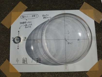 一定時間ごとに太陽の位置を透明半球上にプロットしていくことで、なるほど、お日様(太陽は)確かに東から南側を西へ移動していることが分かります。