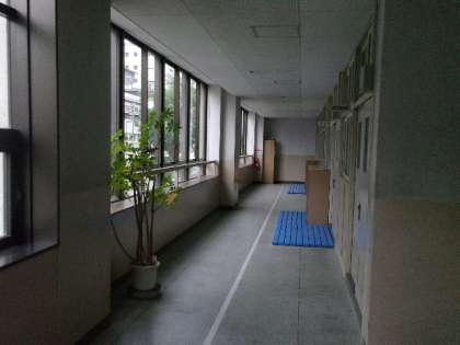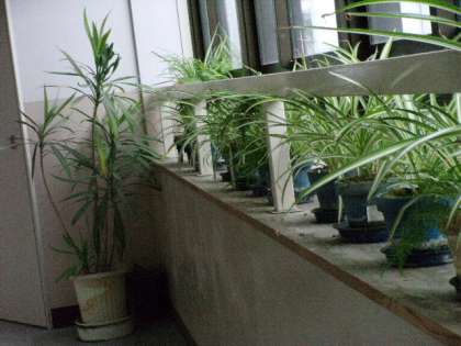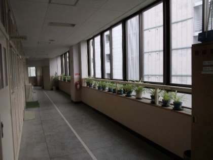 画像の1と2は、本館3階わかくさ学級の前廊下です。窓際の棚には、シダ植物やオリズルランが置かれています。奥に見える鉢はユッカです。