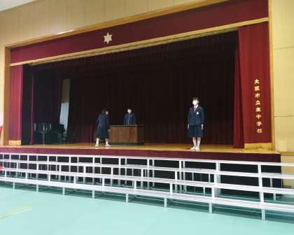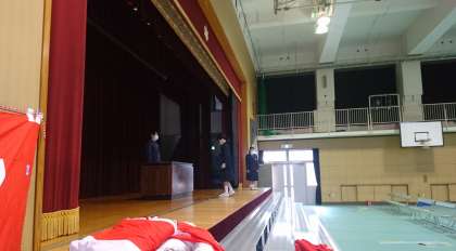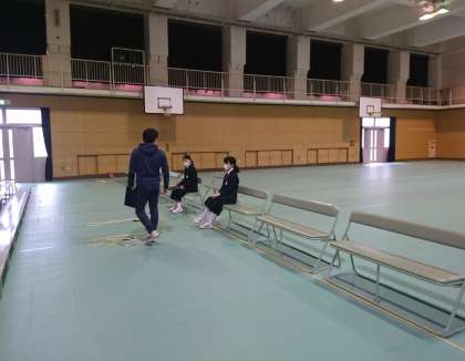 体育館で証書授与の練習をしています。