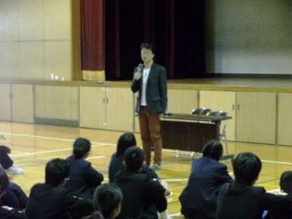 『まず、話がとてもうまくて引き込まれた。重要なところが重要だと分かるように説明してくださった。そして、「かき分けても、もぐっても、跳び越えてもいいから、自分と違う境遇の人をみつけてください・・・・・」みたいな?ことや。(中略)あまり多文化について興味なかったけど、話が終わった後に金さんの話をもっと聞きたいと思った。受験が無事終わったら(おわるかな・・?)コリアンタウンへ行きたいと思った。』(生徒の感想より)