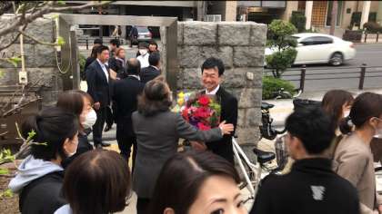 いよいよ離任される先生方を見送る花道です。吹奏楽部の演奏と、例年を遥かに上回る在校生、卒業生、保護者の皆さんで拍手喝采の花道です!