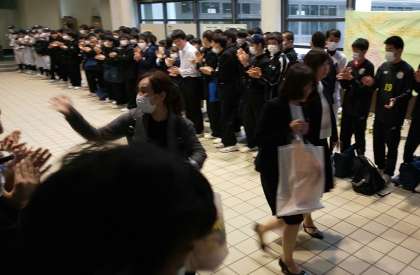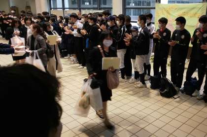 東中教育の推進に全力で取り組んでこられた先生方をみんなが大きな拍手で見送ります。