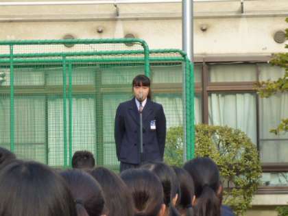 最後に「敬語が使える人」だそうです。そして、最後まで残る人の共通点が『まじめ』だということだそうです。『成功=努力+継続。成功する人はまじめに努力し、それを継続していける人』逆に言えば、『いい加減な人はいい加減な結果しかでない』と言うこと。みんなもこの話に自分自身を重ねて振り返り、『まじめ』な学校生活が過ごせているか自問自答してほしい。と話されました。