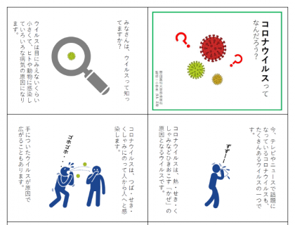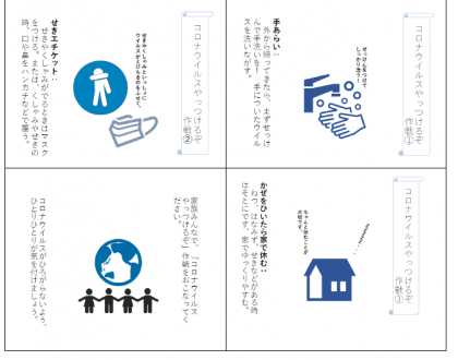 大阪市教育委員会より、コロナウィルスの感染拡大を防止するための啓発資料がが届きました。(こちらをクリックすると拡大されてきれいに表示されます。)