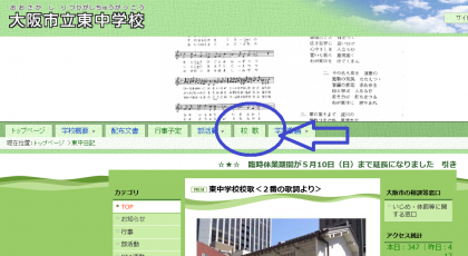 ※ 画面上部のタグ「校歌」をクリックしてください。